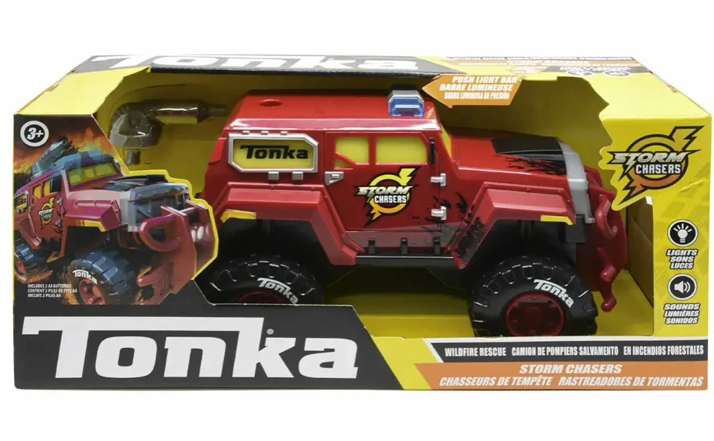 Come to the rescue with Tonka Storm Chasers! Tough enough to handle any storm or natural disaster, this rugged Wild Fire Rescue Truck features realistic light and sound effects, encouraging kids to get active via fun and imaginative play!